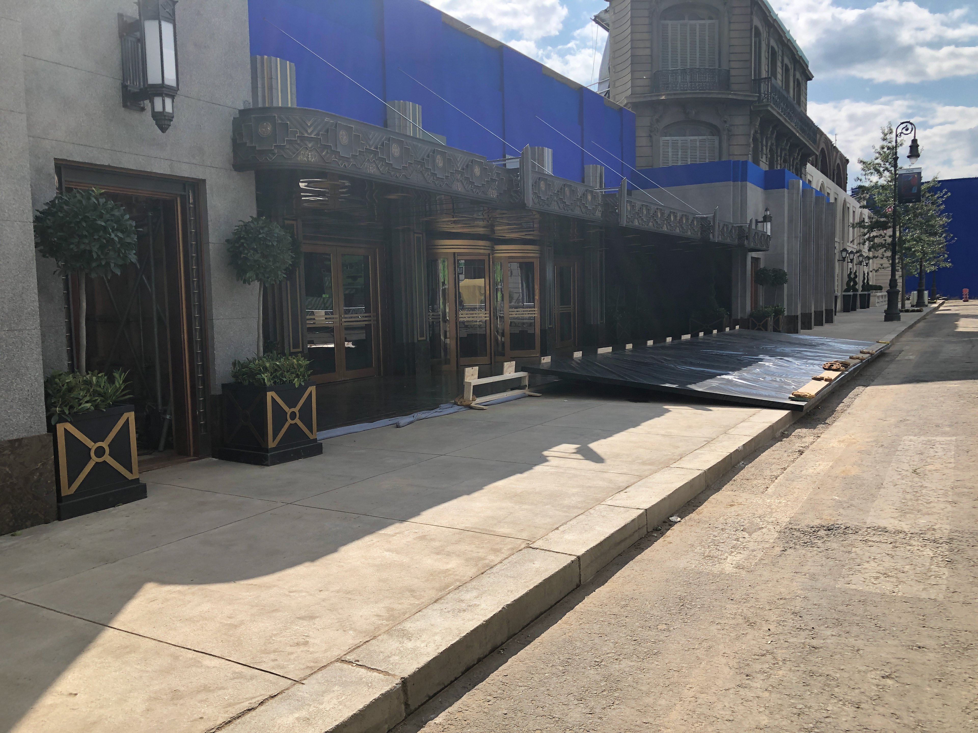 We revamped the 'Streets' from Fantastic Beasts on the Leavesden Backlot and turned them into New York streets. We then built our hotel exterior into the existing street build. I worked on the street revamp and developed the hotel exterior and hotel build.