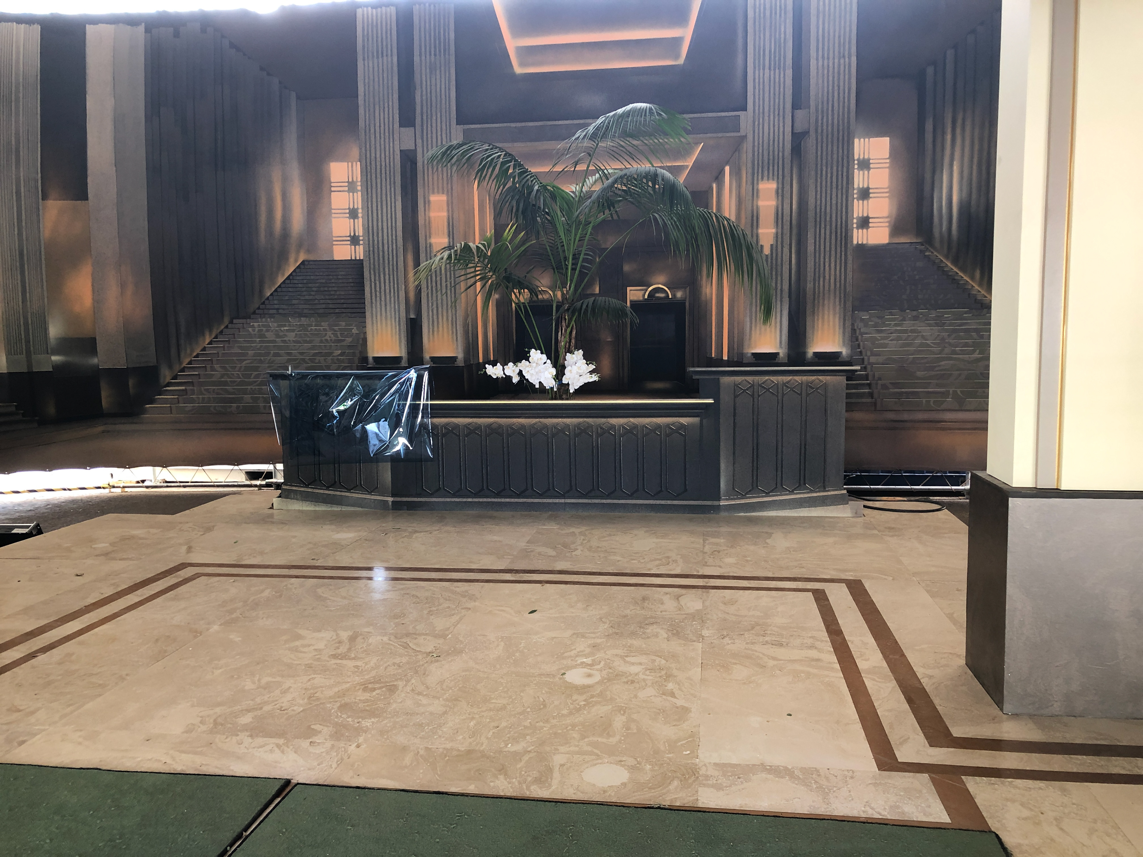 Hotel desk with painted backing below